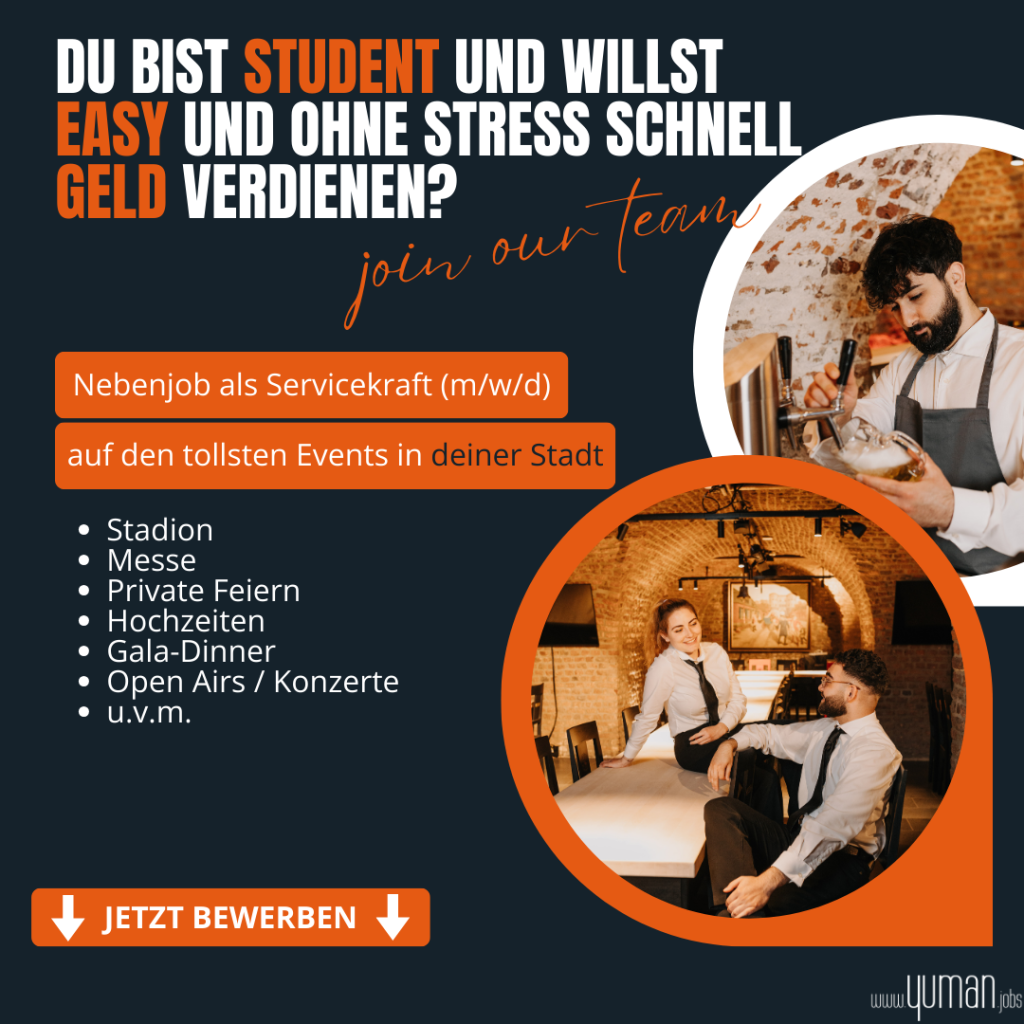 Landingpage Social Media Willkommen bei YUMAN Wir suchen Dich als Servicekraft! (m/w/d) Bewirb dich in wenigen Minuten!